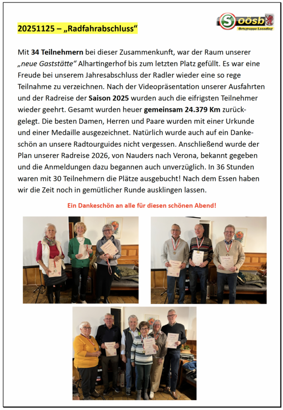 25. November - Abschlussabend der Radler