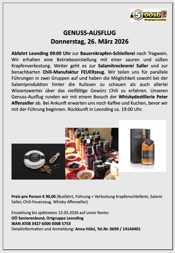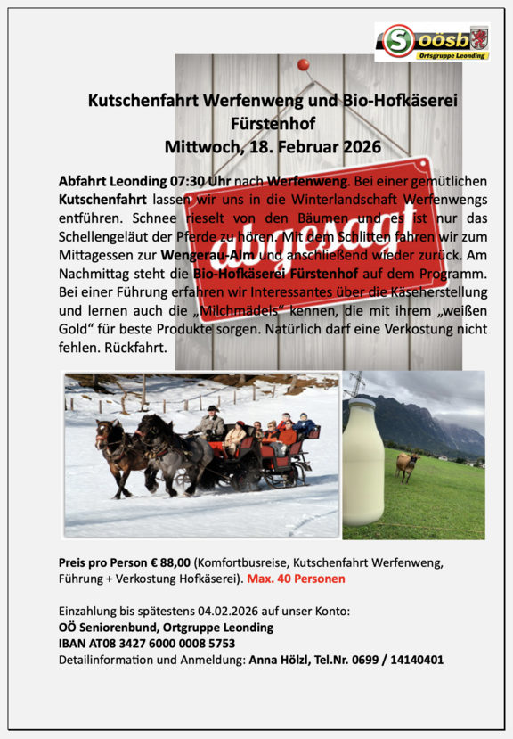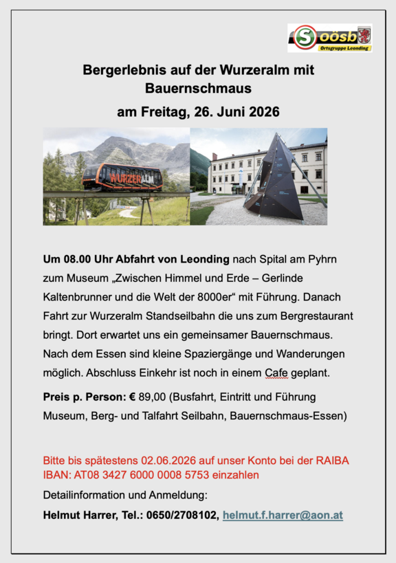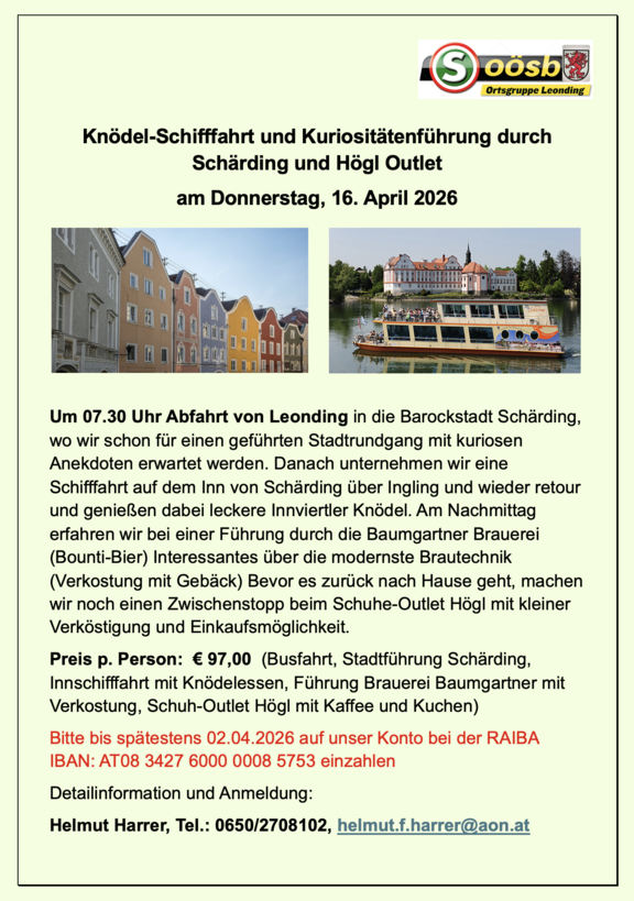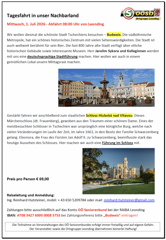 es sind noch Plätze frei - bitte bei mir melden Reinhard Hutsteiner 0650 5209784