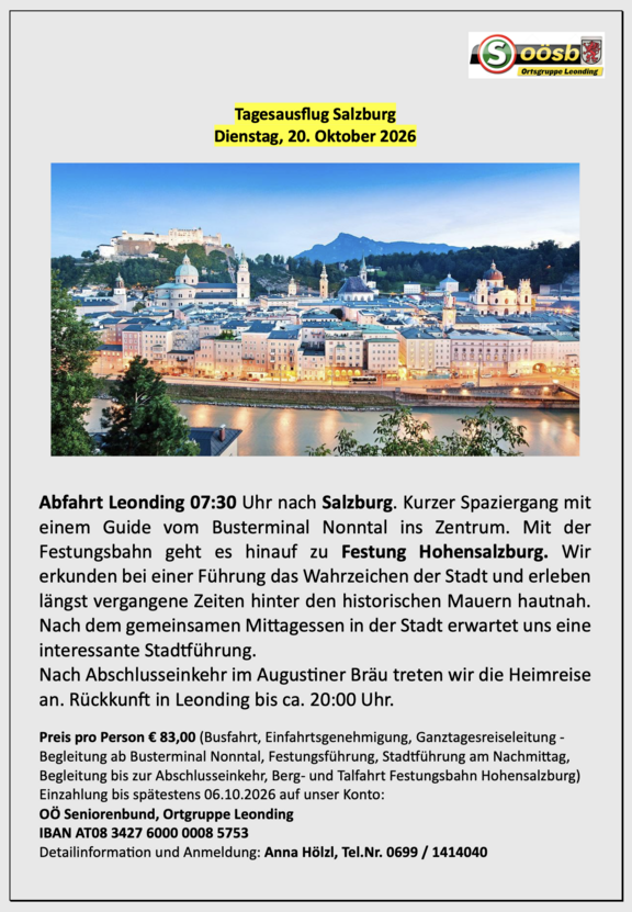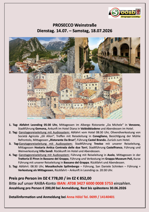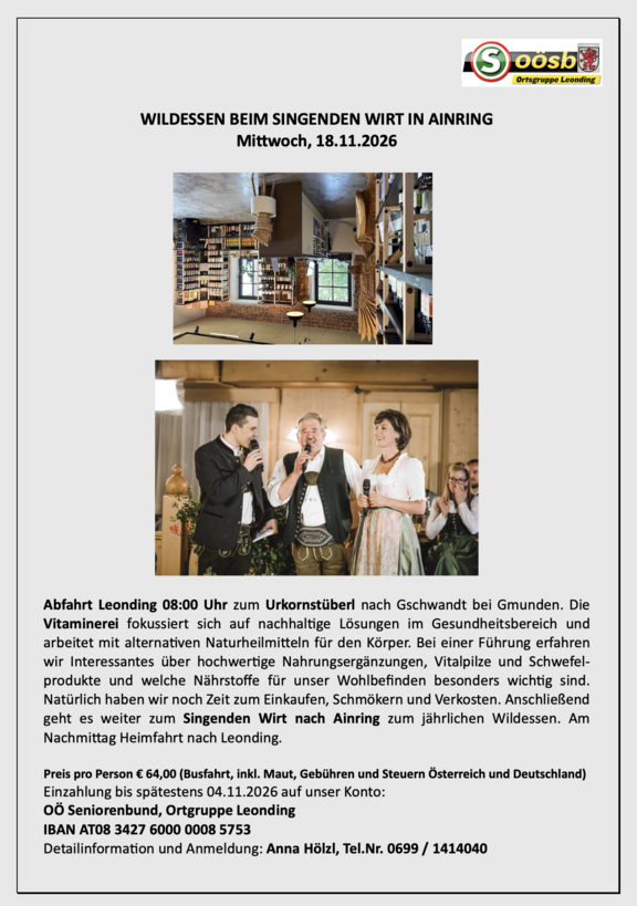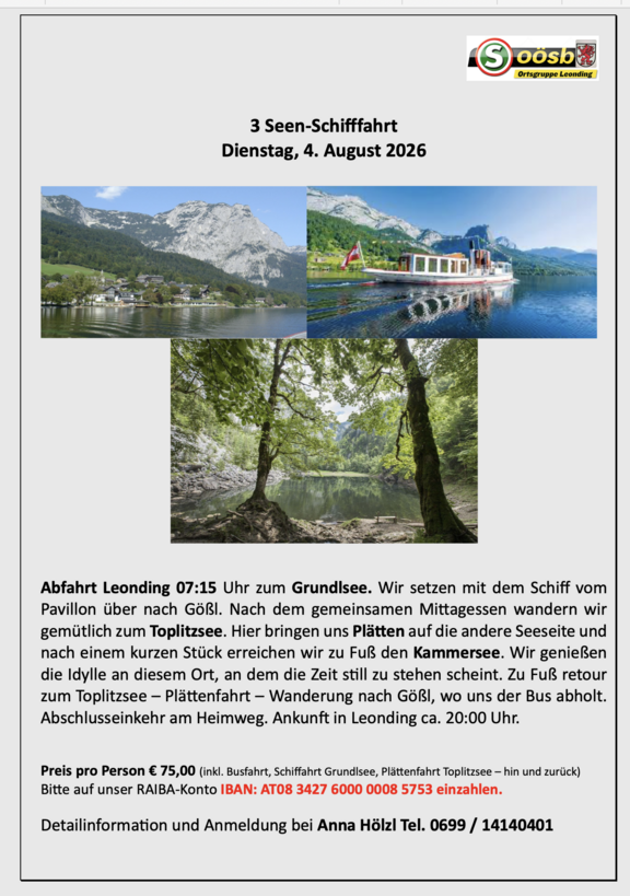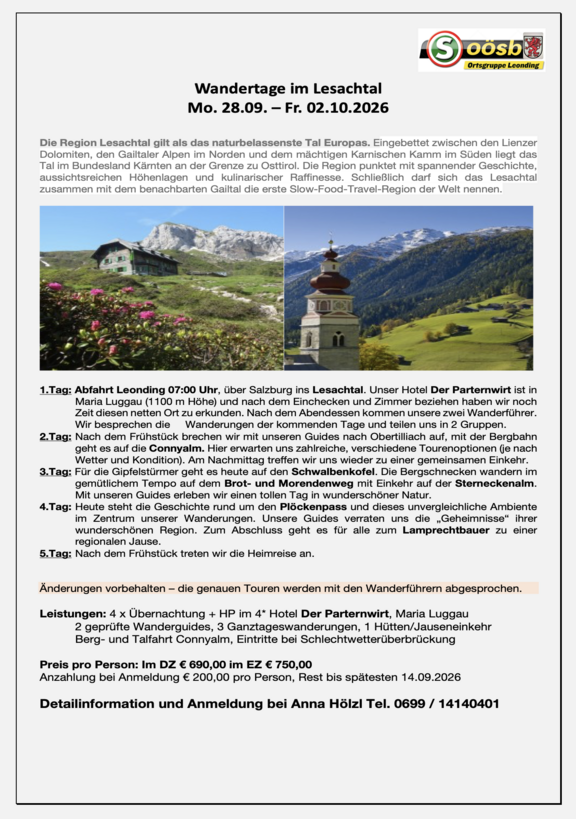 Anmeldungen ab sofort bei Anna Hölzl - Telefon: +43 699 14140401