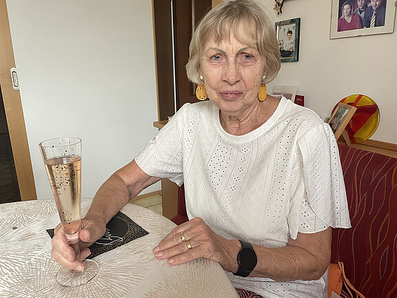 Obfrau Anna Hölzl gartuliert der fitten Helmtraud zu ihrem 85. Geburtstag recht herzlich !