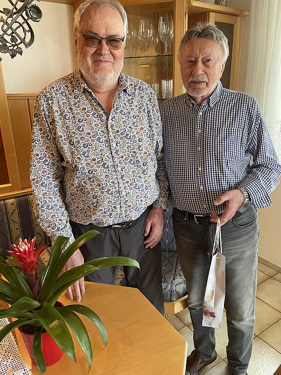 Anna Hölzl und ihr Stellvertreter Helmut Harrer gratulierten heute unserem fitten Willi Weinert zum 80er.