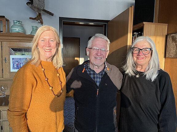 Sprengelbetreuerin Johanna Weindlmayer und Anna Hölzl gratulierten dem Jubilar auf das Herzlichste zu seinem 75er.