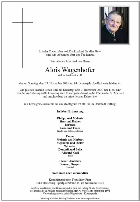 Wir werden Herrn Wagenhofer der im 94. Lebensjahr von uns gegeangen ist, in guter Erinnerung behalten!